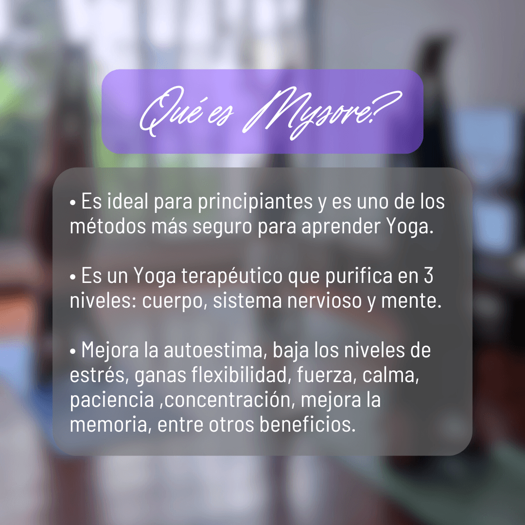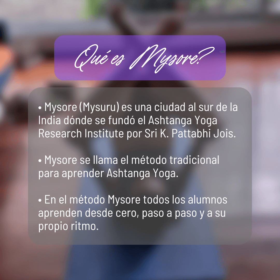 El estilo o método Mysore es una forma tradicional de practicar Ashtanga Yoga, nombrado así por la ciudad de Mysore en India, donde Pattabhi Jois enseñaba. A diferencia de una clase de yoga guiada, en una clase Mysore los estudiantes practican a su propio ritmo, siguiendo la secuencia de posturas que han aprendido, mientras un instructor los guía y ajusta individualmente. Este formato permite una personalización y atención individual que ayuda a los estudiantes a progresar de manera segura y efectiva en su práctica.