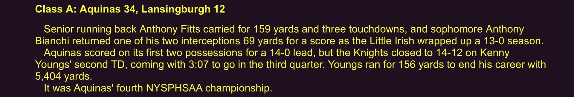 The Lil' Irish were back with an old school running game and a stout defense to win their fourth state champhionship.