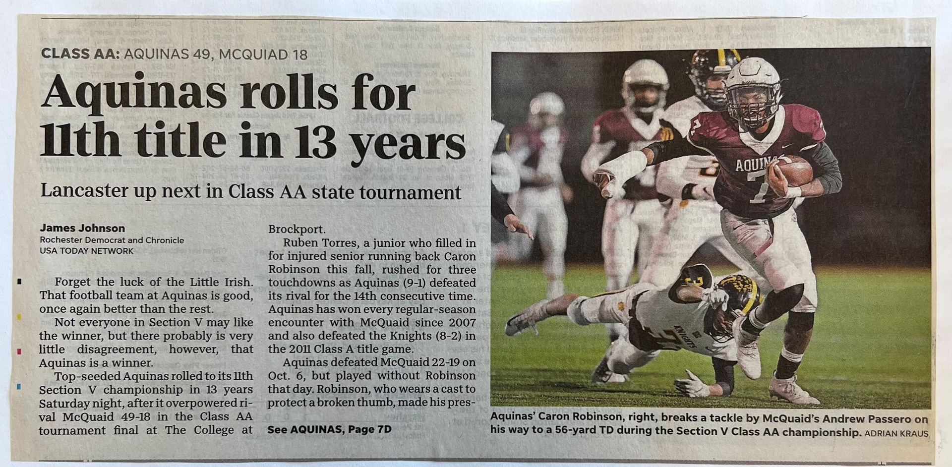 The play of the offensive line as well as the return of Caron Robinson helped Aquinas to another sectional repeat