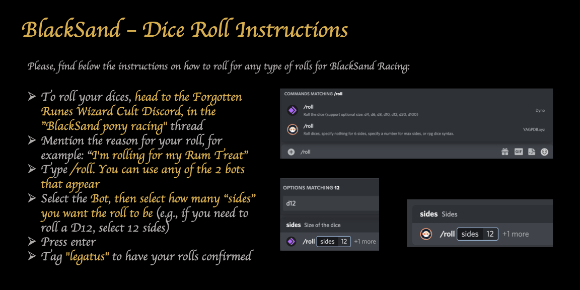 1) State what you are rolling for in the BlackSand pony racing thread (FRWC Discord)