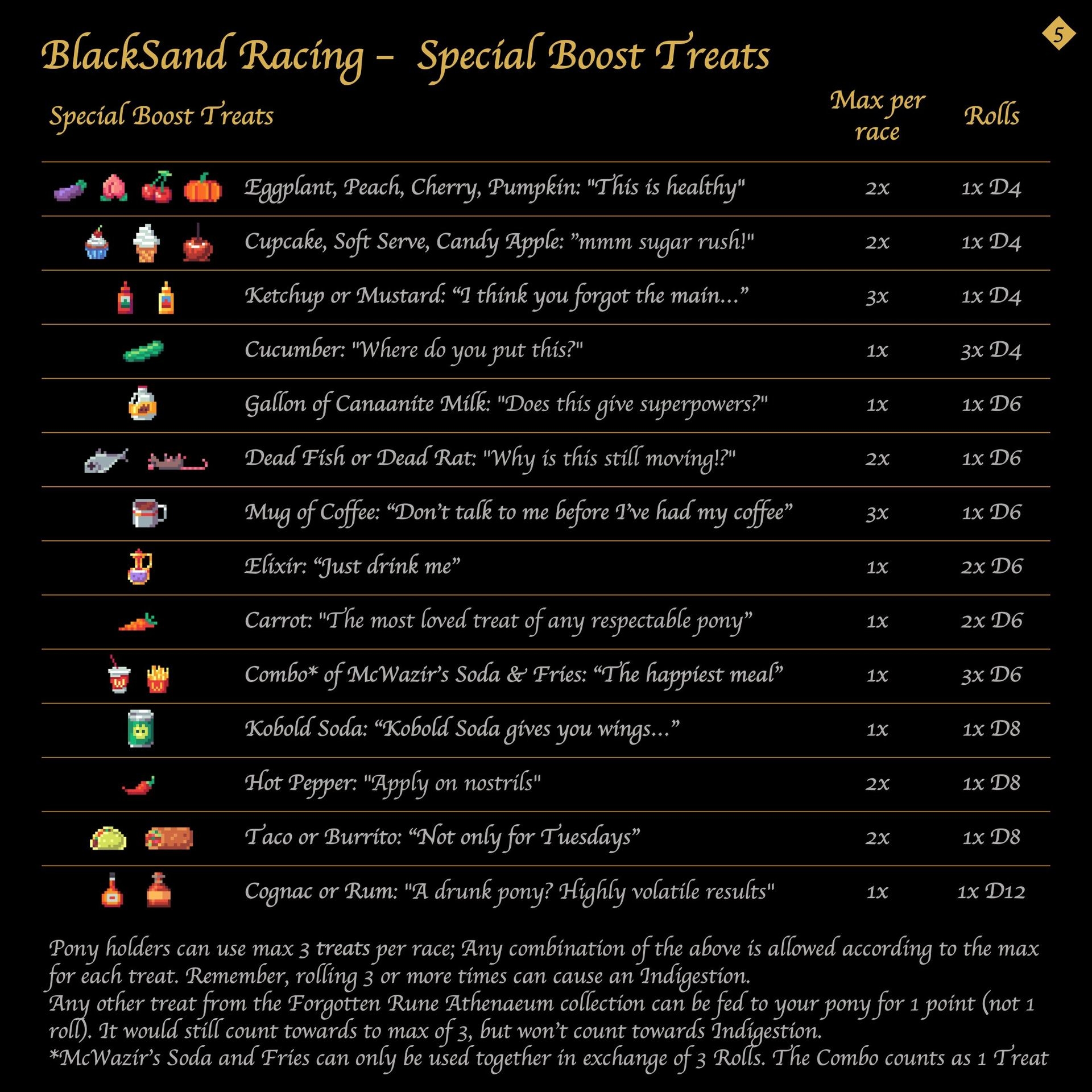 Note: if a treat grants more than 1 Treat Roll, all the rolls must be rolled at the same time (e.g., Elixir grants 2x D6 and when fed to a pony, the holder must roll 2 D6s and cannot only roll once)