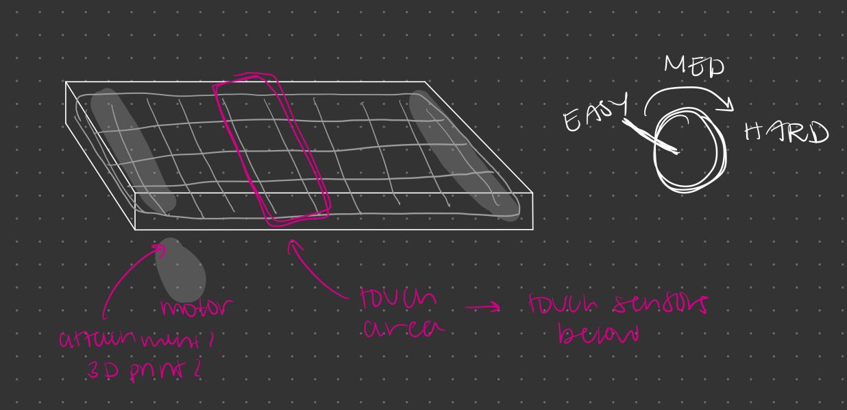 The objective of the game is to tap the correct sequence of piano tiles which creates a short song. The sequence is pictured on the conveyor belt that is controlled by the motor. If the user taps the correct tile, the belt will continue moving, but if they click the wrong tile, or do not tap it in time, the belt will stop and the game ends.