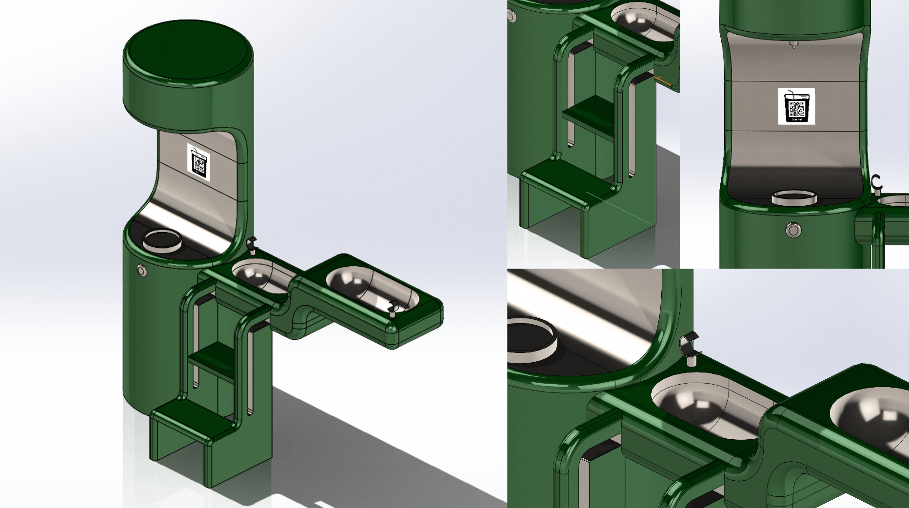Designing a CAD model of a water fountain with improved accessibility for children provided a practical opportunity to balance aesthetics and functionality. By incorporating child-friendly modifications and considering their specific needs, such as adding steps and lowering water spout and dish height, the fountain became visually appealing and engaging. Simultaneously, optimizing functionality with child-friendly controls and intuitive interaction mechanisms ensured a safe and enjoyable user experience. Through user-centered design, observations, and user testing, the design choices were refined, resulting in a visually appealing and accessible water fountain that met the unique requirements of children.