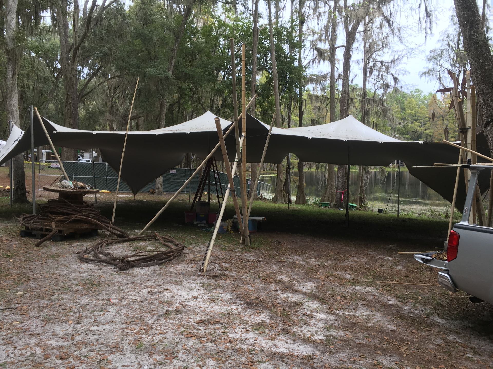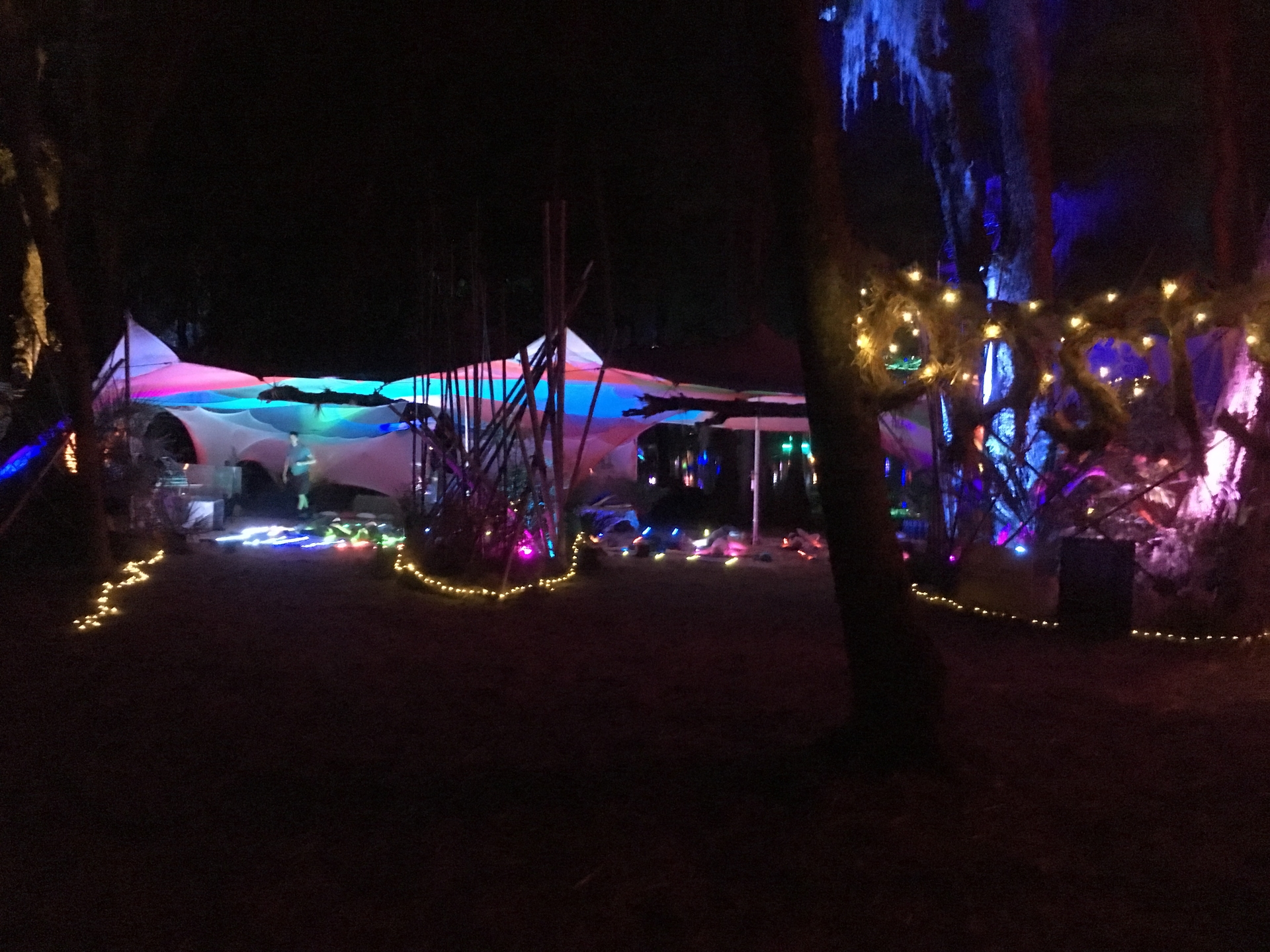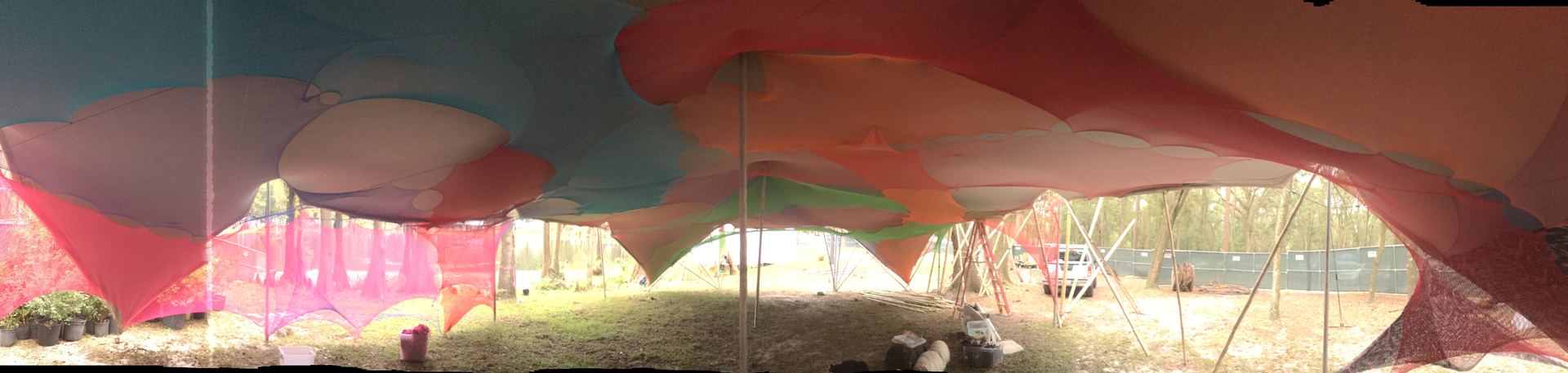 A commission to create three environments for the festival. These photos are of the Oasis. A place for meditation and Yoga