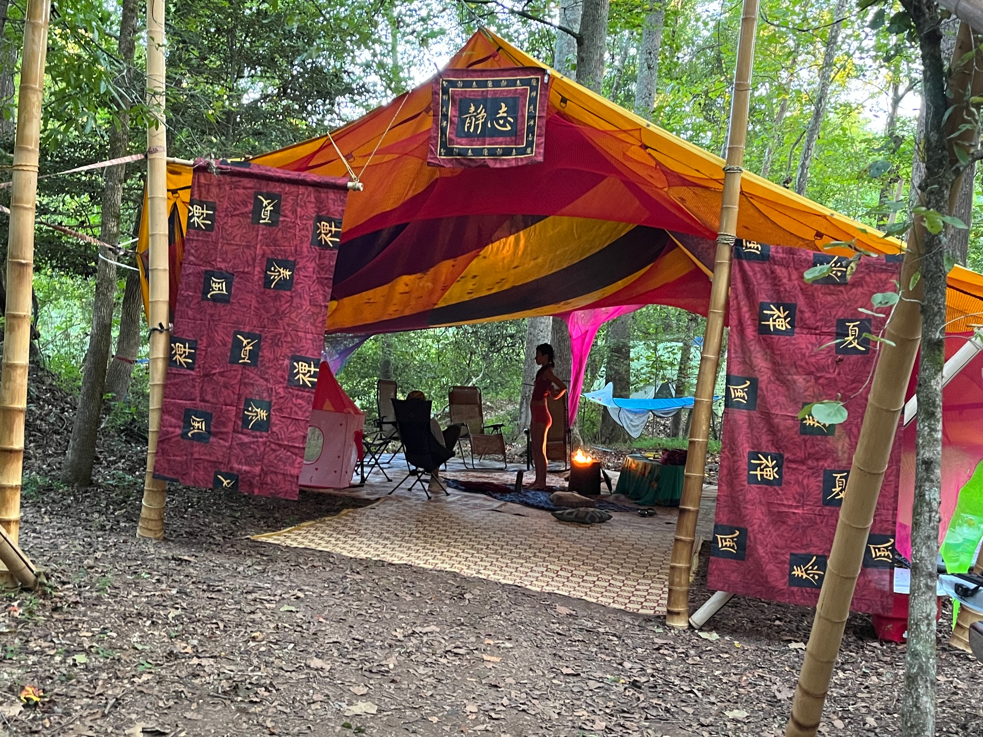 I can safely say my creating Irresistible Spaces grew out of this original jankey arrangement I made for rain protection.