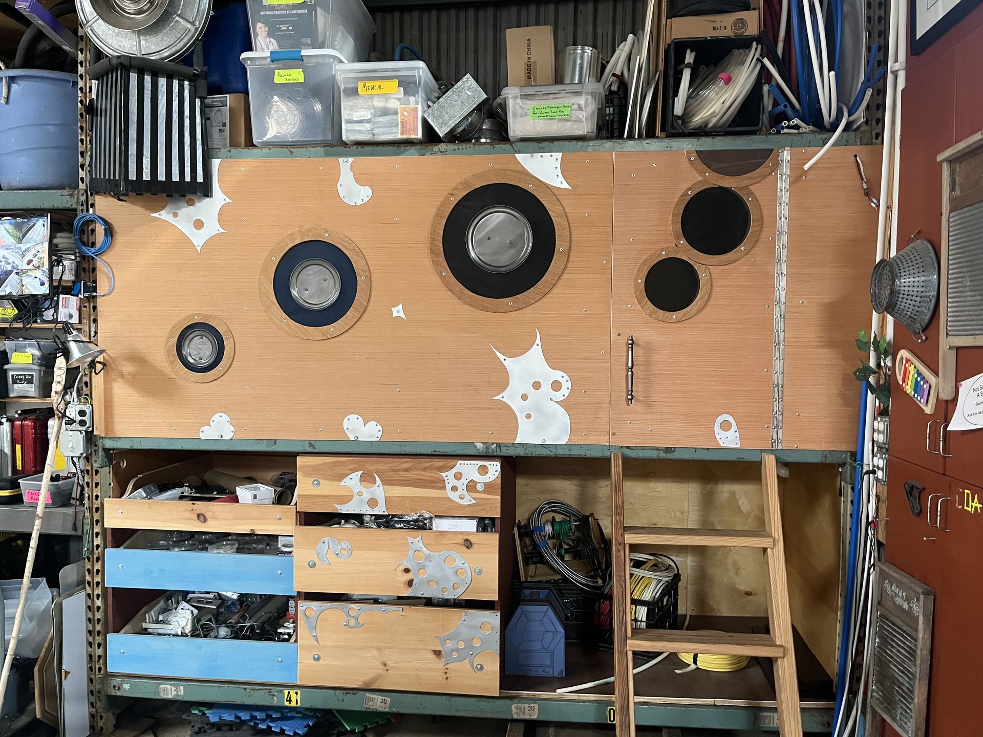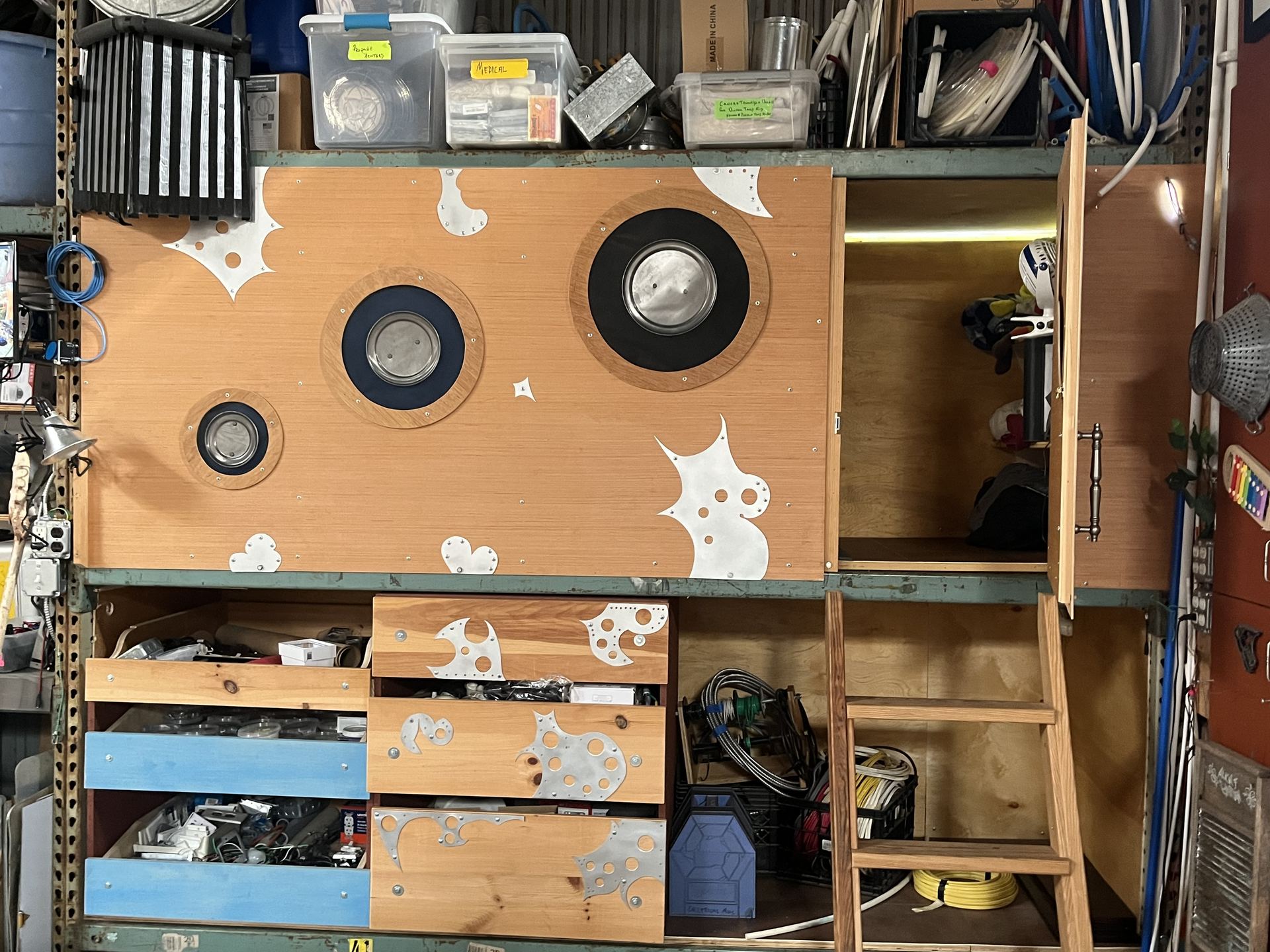 Places to sleep for traveling artists. I constructed these when I was part of Living Art America, which promoted and created Body Painting Festivals in the US. For one festival in Atlanta I had 10-12 artistes staying in my home. I originally created two of these pods in my studio, I do not seem to have any pictures of the second one
