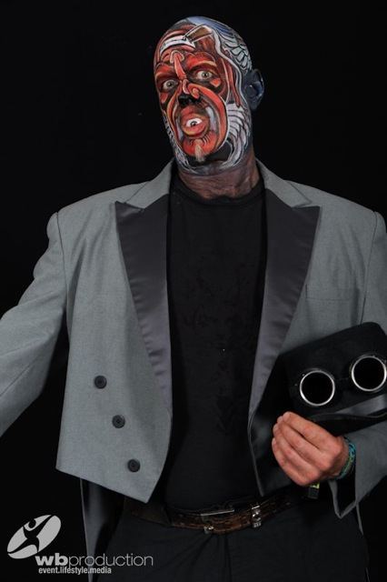 Yep, that is a glass eye in my mouth. I stayed in character for around 8 hours. I got to live in a very different world for that time. Did I mention we took First Place at the World Body Painting Competition in Pörtschach am Wörthersee Austria in 2016
