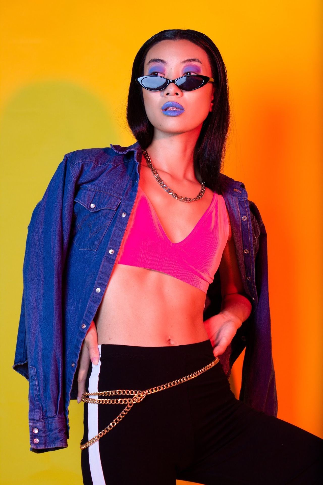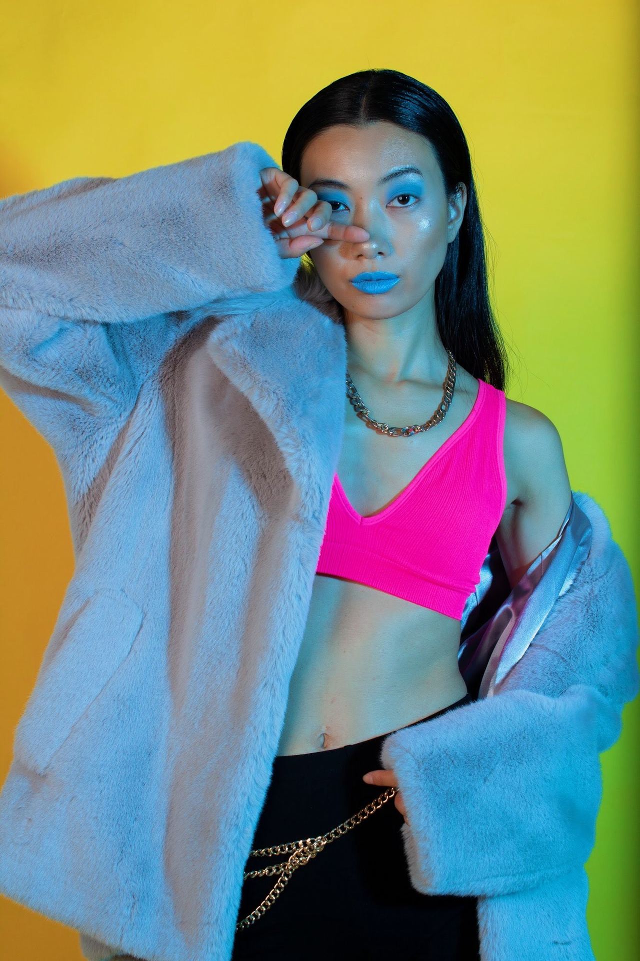 The makeup was designed to make a statement, standing out against the studio backdrop and enhancing the overall aesthetic