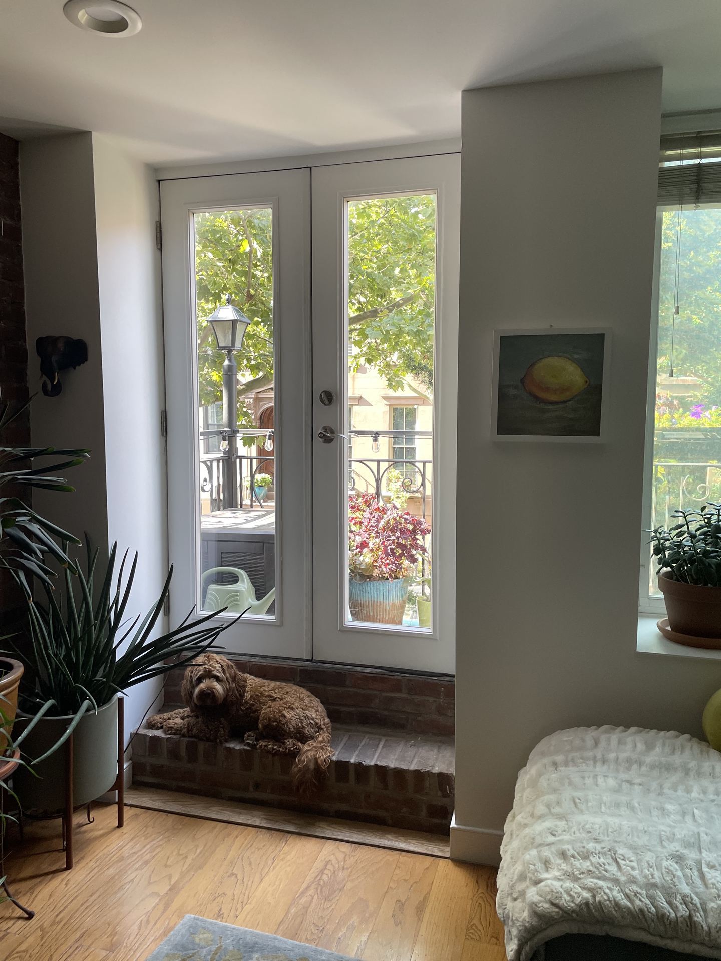 Join us the next morning for a casual brunch at our apartment in Carroll Gardens. Stop by whenever you've recovered from the festivities, eat some bagels, and meet our dog, Gertie!