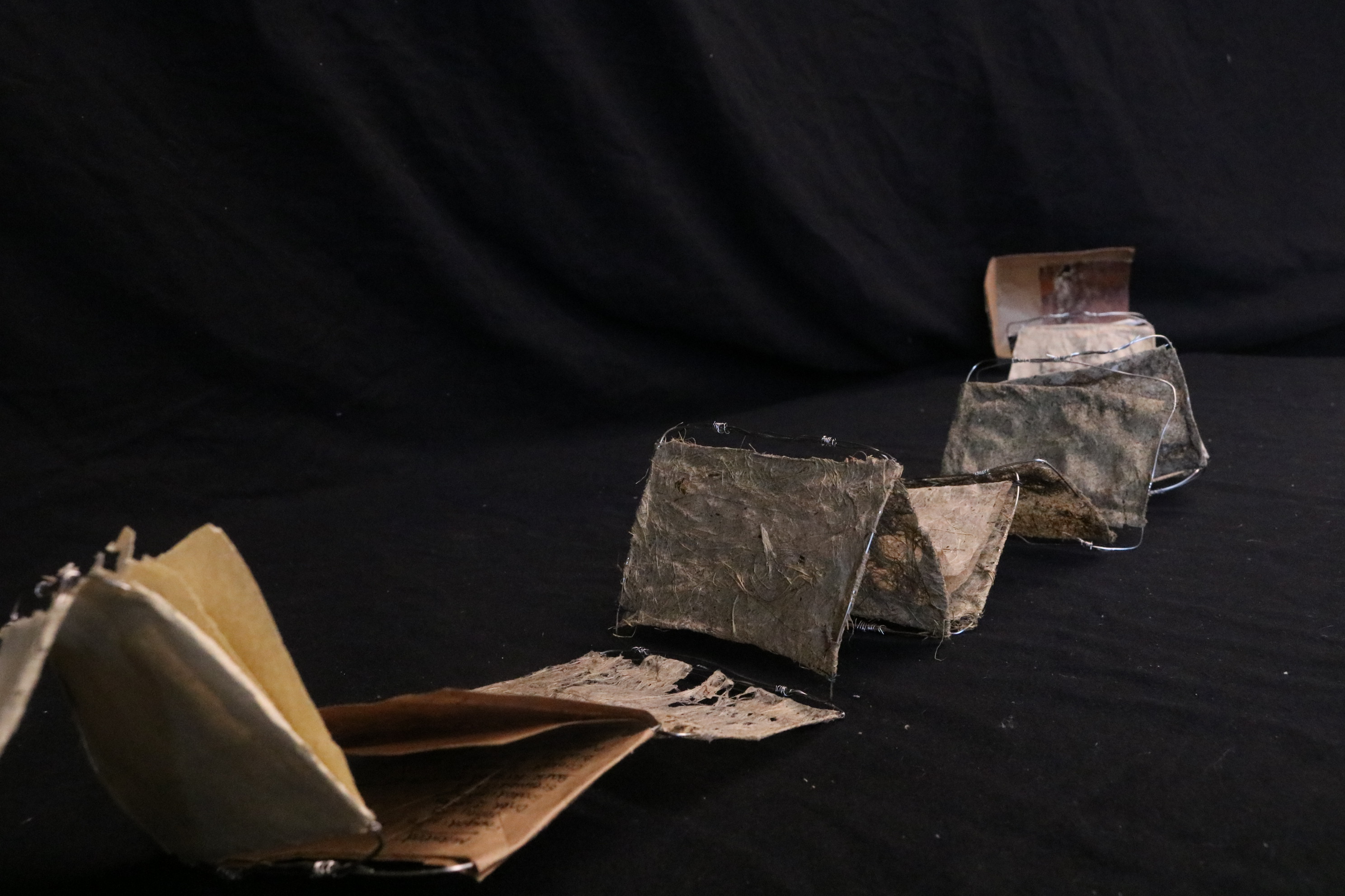 Experiments with papermaking from foraged plants and recycled materials.