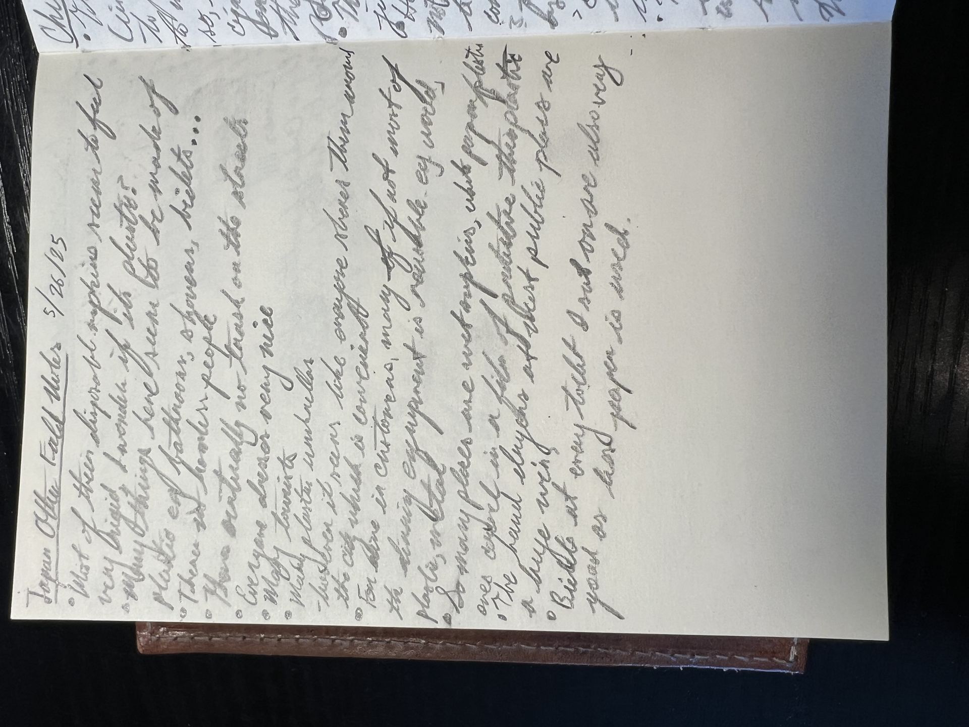 Note: In these sections of each subpage I will transcribe all relevant excerpts from my journal entries into text, creating easier readability for myself and site visitors. Whilst doing so, I will interpret and/or comment on some of my notes along the way. Please excuse my writing(grammar, spelling, errors, and more!) because I wrote most of these journals very quickly abroad and they serve as a way for me to quickly get my ideas, questions, and/or observations down on 'paper'.