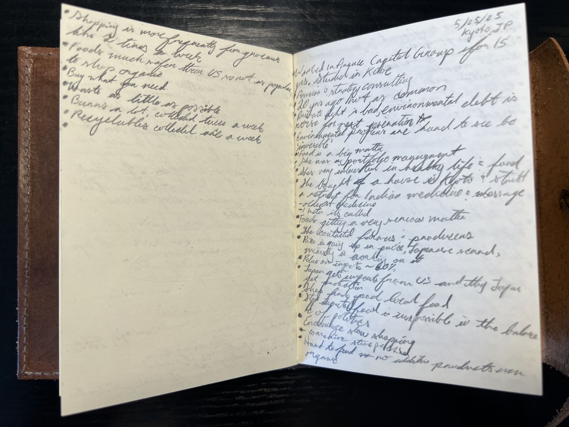Mr. Kawaratani lived in Orange County before moving to Kyoto to further his career. I found this to be very valuable as I could ask him about his experiences in both California and Kyoto relating to sustainability and waste cultures.