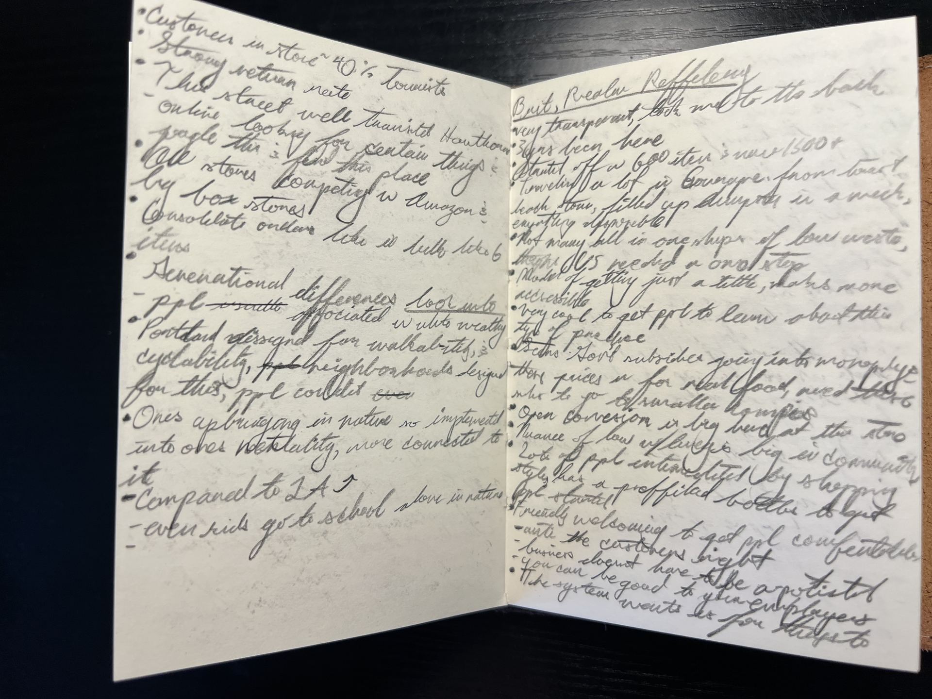 An easier was to get people to change their way of thinking or 'way of being', no pun intended, is through 'organic' ways. By this, she means through the natural flow of people about and around in the area of where her brick and mortar store resides that wonder into her store because it looks interesting to them or any other reason for them to go inside and take a peak at her ZW items. In-store shopping also reduces shipping waste and emissions. Portland reminds me of a Claremont Village sort of vibe where there are lots of little restaurants, retail shops, cafés, and that sort of thing, but here in Portland, there are these sorts of areas everywhere. From the things I have heard from friends is that Portland loves supporting small business like mom & pop shops over big corporations like Walmart or the such. I believe that this might be a sustainable choice in terms of the environment as each neighborhood here in Portland is designed as small communities that each have the basic necessities and more that they need. I feel like this would greatly reduce the amount of transportation that the residents of these communities will need as they can simply walk to get the things that they require instead of having to make a long trip to the local mega market thats who knows how far of a walk from them. This same concept that I am thinking about could also work with local retail stores, restaurant's, and cafés. If I wanted to walk from where I live in Pomona to Downtown Pomona(the closest stores and such) it would take me roughly one hour. I don't know how this compares to the average Portland household, but maybe it was just my romanticization of Portland as an eco-consious liberal teenage Southern Californian/Pomonian.