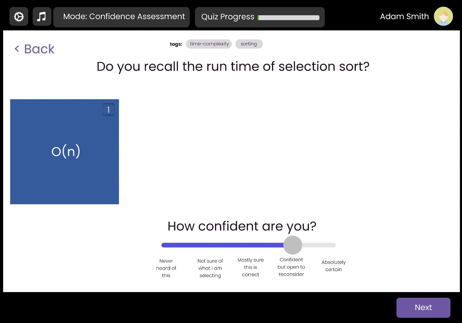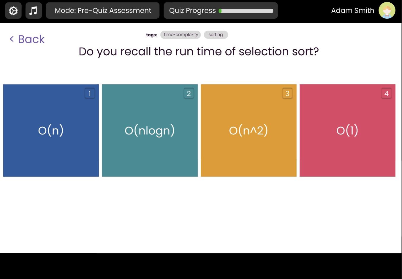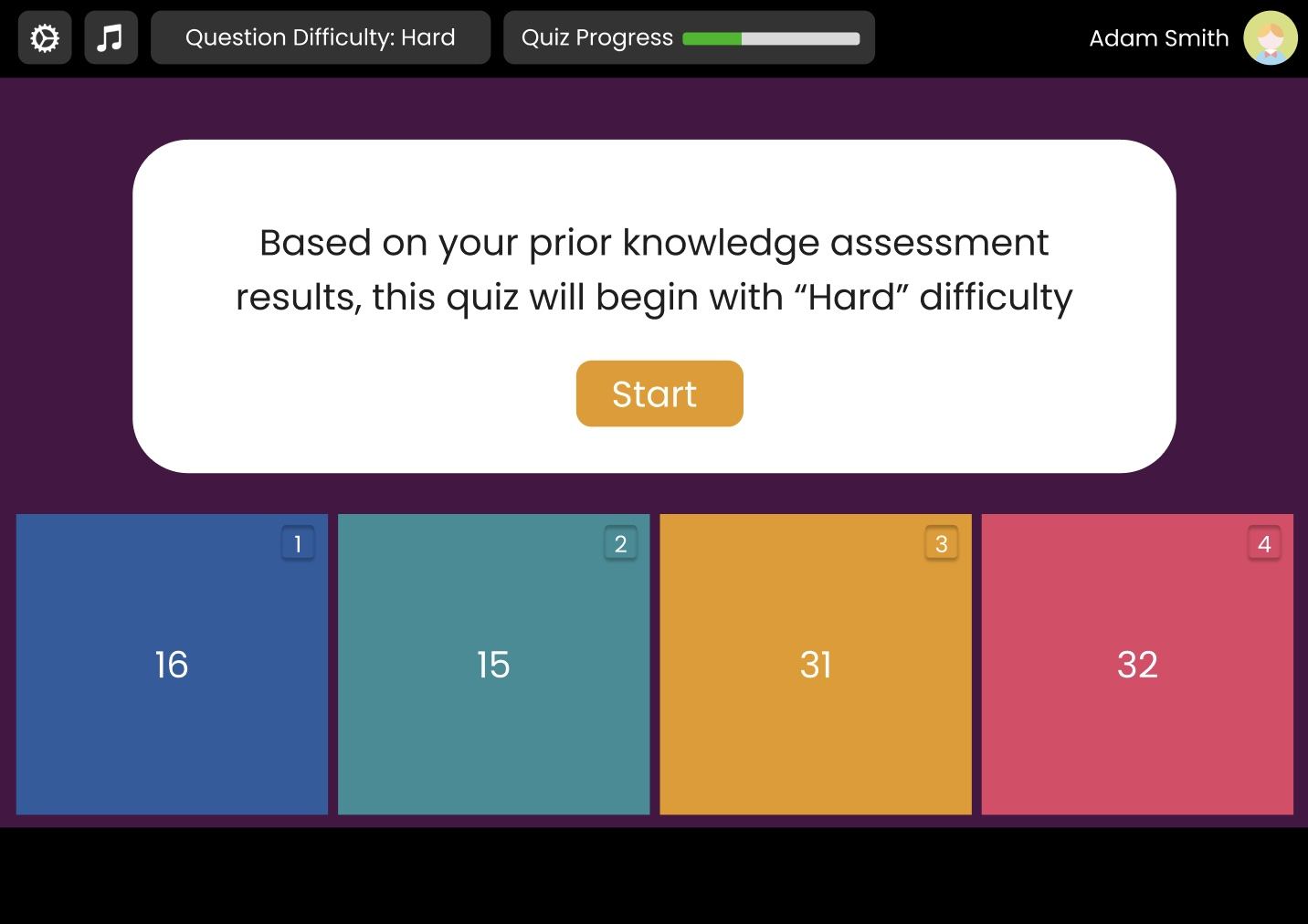 Student performance is enhanced when prior knowledge is activated, so easier questions cover foundational material and prompt connections to harder questions. Students should be presented with learning at the right levels. If the student struggles on easy questions, the quiz ends early and suggests easier quizzes.