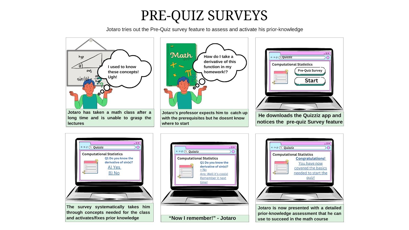 Donāt assume that the students will use their prior knowledge before taking a Quiz! Present a survey to trigger recall before every quiz.