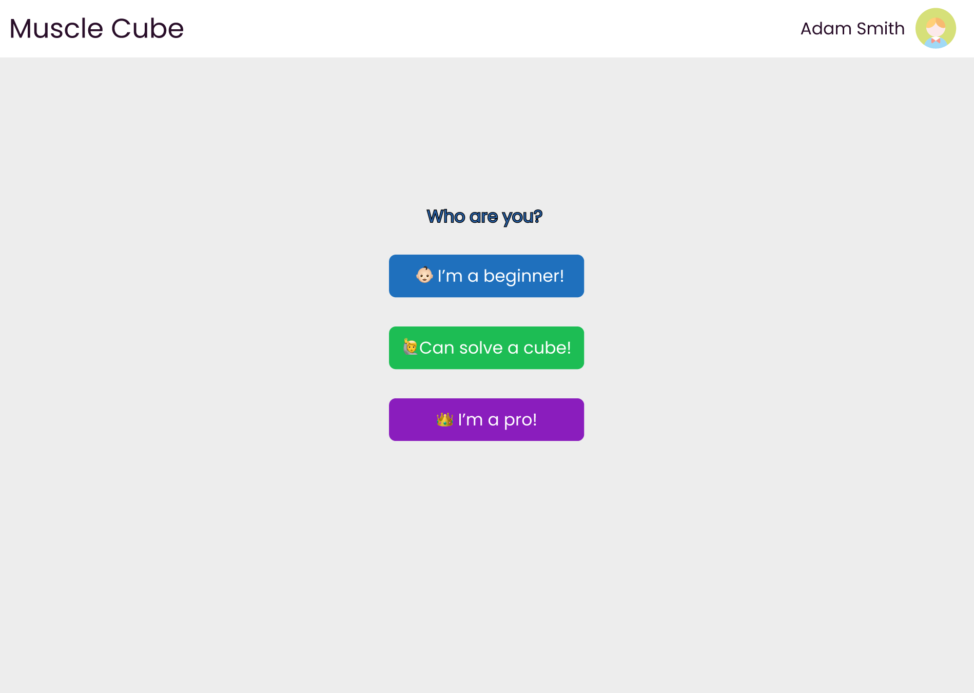 The Muscle Cube's Home-Page aims to keep things minimal and take the users directly to their practice sessions. We target three demographics: