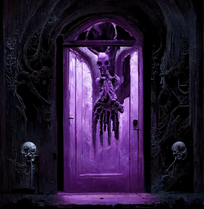With a slight twist in the hand, human-sized levers shifted within the doors, their echoes reverberating throughout the hall. A sliver of light suddenly bisected the dark room; the Gate was opening. With enough light to finally see the outline of their attacker, the guards stepped forward to engage. But their attention shifted to the massive horde behind the wizard, purple eyes glowing brightly, scrambling to enter the hall. The undead mob rushed forward and quickly overpowered the guards leaving nothing but stained tapestries and a slick floor.