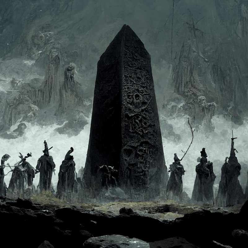 [flashback to the wizard walking a narrow, cliffside path to a giant spike jutting upward as if stabbing the sky. It is surrounded by the remains of several wizards and warriors at varying stages of death and decay. Exhausted, the wizard steps up to the base of the Spike, noticing the scorched hand prints all along its surface. The Dreamer looks down at a body before them, its face writhed in agony, then at their blackened hand held aloft, tendrils of shadow drifting following the billowing air currents of the cliff. What is dead cannot die. The wizard places its blackened hand on one of the Spike’s obsidian stones and pulls a piece away. The tower screams, the dead wizards around its base suddenly twitch and shuffle to their feet, their eyes as black as the stone, their breathing labored or absent. The Dreamer backs down the altar steps slowly, but the undead horde does not move. A few pebbles slide out from beneath the wizard’s foot. The horde charges forward and surrounds the immediate area of sound, the wizard having silently moved just a few feet from their presence. Hmm. As a test, the wizard summons a copy of one of the vermin they ate the previous night. Hearing its paws across the stone, the undead wizards swarm it and tear it to pieces in mere seconds. The wizard smiles. Interesting.]