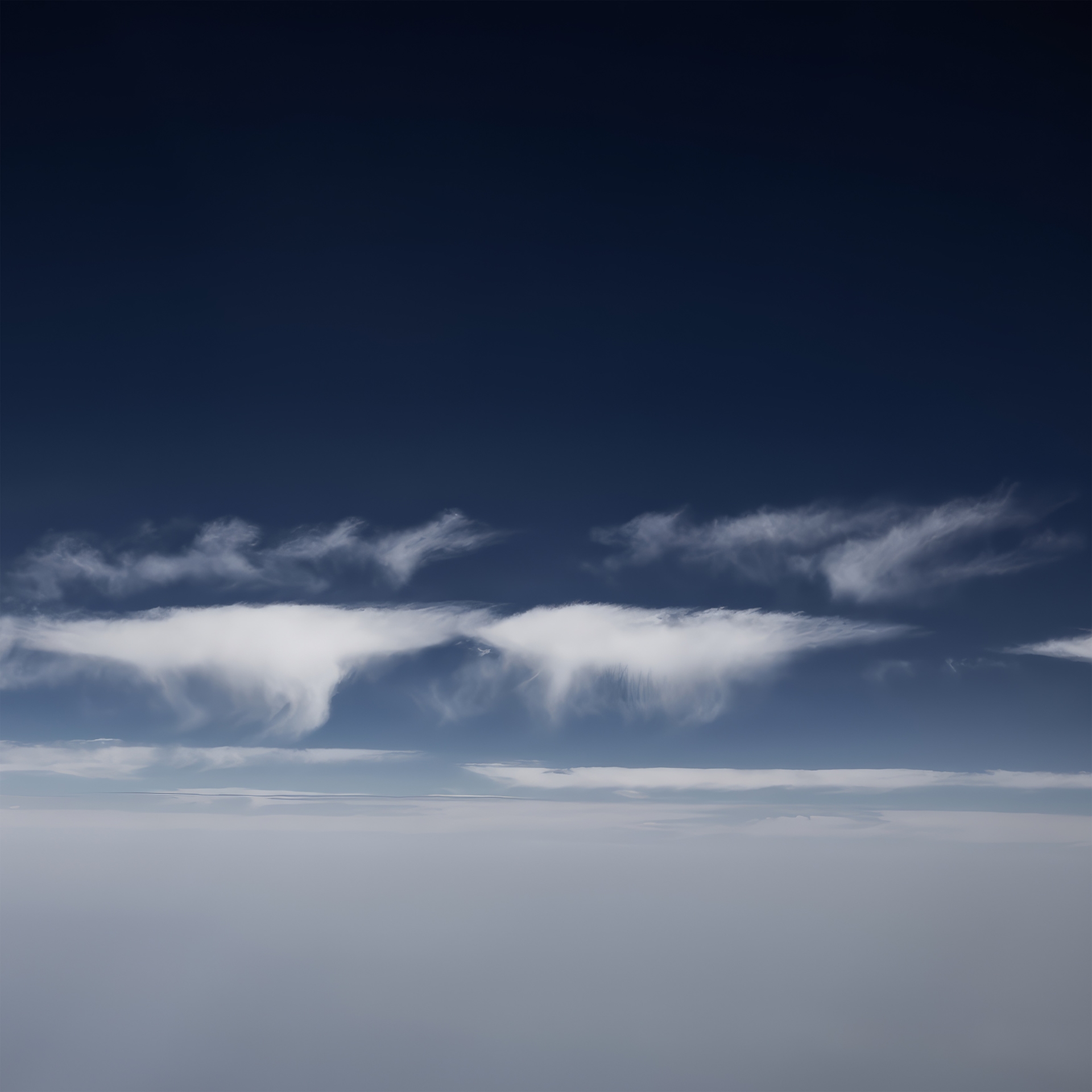 The album’s title Caelum —meaning “sky” in Latin— symbolises the music’s expansive quality and the overarching theme of seeking stillness through elevation. The concept is beautifully complemented by the cover art, created in collaboration with digital artist and pilot Ozark, whose Voyages NFT collection captures breathtaking aerial photographs of skies and horizons taken from his cockpit.